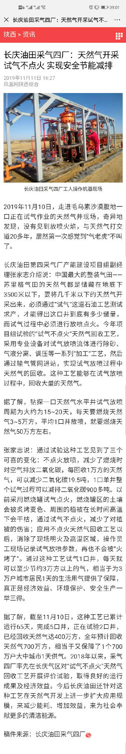 齊達康試氣回收裝置(壓裂放噴天然氣回收裝置)助力長慶油田采氣四廠天然氣開采試氣不點火,實現安全節能減排。運行效果和經濟效益得到了用戶的充分肯定。