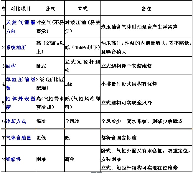 三、立式和臥式液壓活塞壓縮機綜合比較
