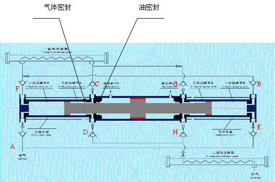 1. 氣缸和油缸雙缸一體結構,液壓油每運行一個行程,都會將氣缸壁冷卻一次,因此,氣體和氣缸壁的溫度較低,不需水套缸冷卻;