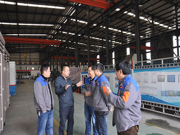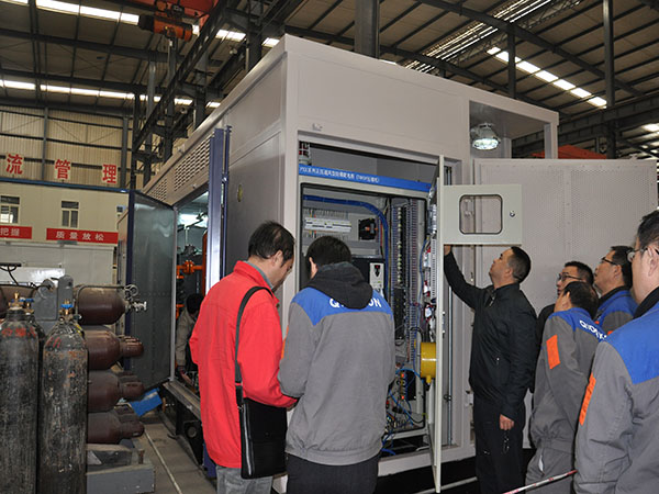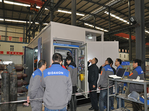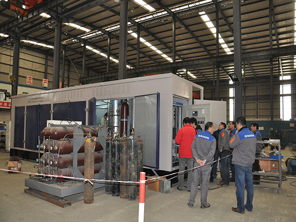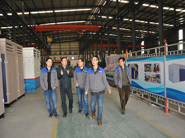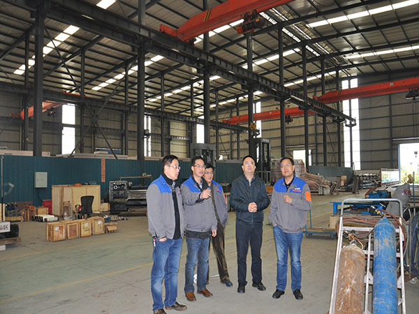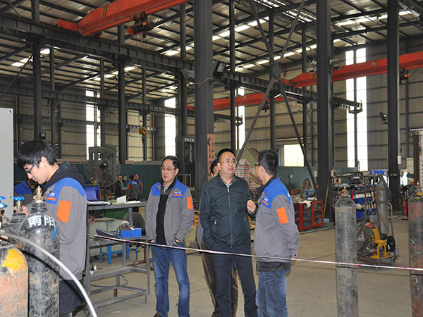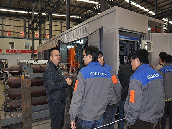 2016年11月8日中石化石油機械制造股份有限公司江鉆武漢天然氣分公司常務副總張慶一行蒞臨齊達康參觀考察。圖為客戶在車間參觀他們訂購的一臺井口氣回收撬。