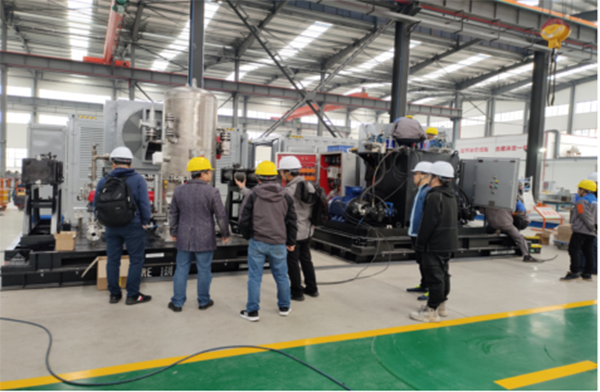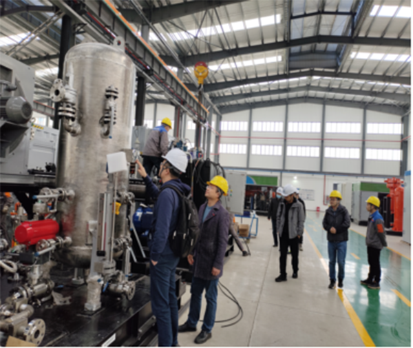 考察團(tuán)隊(duì)在項(xiàng)目負(fù)責(zé)人阮傳信的帶領(lǐng)下,來到了生產(chǎn)現(xiàn)場(chǎng),對(duì)在制的YB1.4-110橇裝式氣液混輸增壓裝置做了一次現(xiàn)場(chǎng)驗(yàn)收;總工程師方紅星分別介紹了公司產(chǎn)品市場(chǎng)使用情況、下一步研發(fā)思路及相關(guān)技術(shù)要點(diǎn);通過三天的考察交流,考察團(tuán)隊(duì)就調(diào)試前設(shè)備存在的問題做了一次全面深入的分析、梳理和總結(jié),并與齊達(dá)康公司達(dá)成了優(yōu)化改進(jìn)共識(shí)。