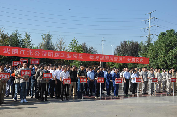 為慶賀祖國70周年華誕,大力唱響禮贊新中國,在職工中集中開展愛國主義教育,9月23日,武鋼江北公司工業園區開展了“我與祖國共奮進”升旗儀式,武漢齊達康的全體黨員參加了此次升旗儀式。