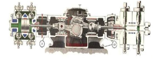 傳統機械式子站壓縮機是最早一代的加氣站壓縮機其傳動模式是:電機帶動曲軸旋轉,通過連桿、十字頭、活塞桿,帶動活塞在氣缸內作往復運動,實現氣體的壓縮過程,實現增壓目的。如下圖: